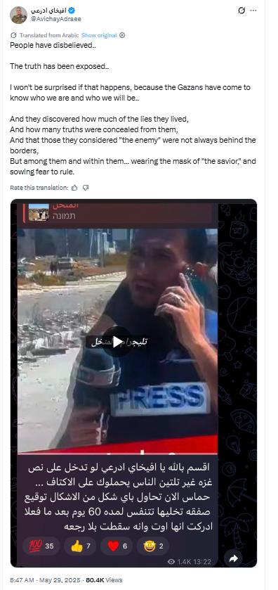 Incitement #47Today's film from Hollywood - Gaza Branch, sponsored by Al Jazeera channel @AJArabic and with special support from the terrorist Hamas: A fabricated drama starring Anas Al-Sharif @AnasAlSharif0, who shed crocodile tears in a carefully staged shot... The world championship in forgery, lying, and slander continues unabated. And Gaza? Yes, it suffers... but from Hamas